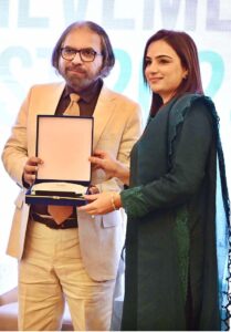 ISLAMABAD: March 01 - Federal Secretary (MoFEPT) Waseem Ajmal Chaudhry giving shield to the participant during the launching ceremony of National Achievement Test 2023 Assessing the Learning Environment organized by Pakistan Institute of Education. APP/SMR/MAF/TZD
