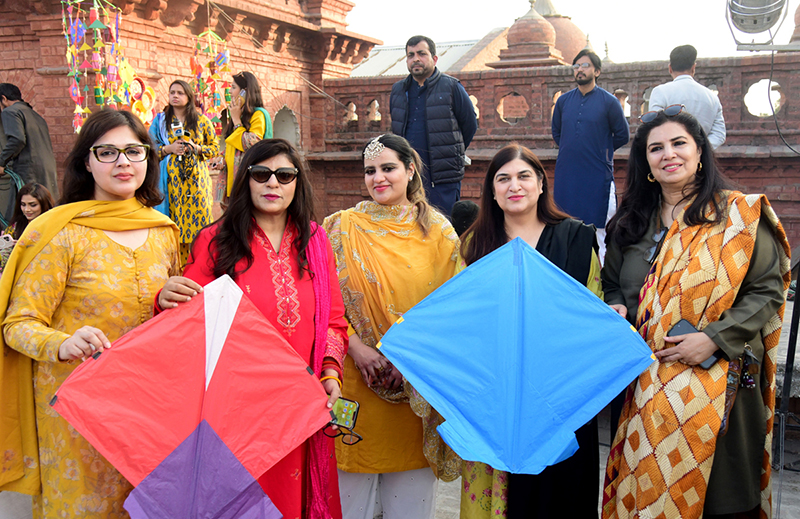 Female teachers participating in the Basant Festival organized by Punjab University College of Art and Design hold kites during the festival’s return to the provincial capital after the ban was lifted after two decades