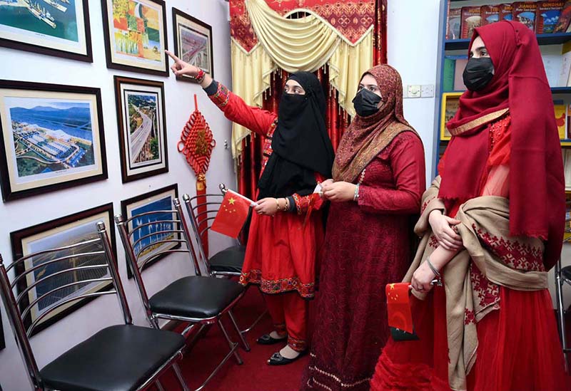 Female visitors taking interest in display china pictures during the celebration of Pak China Friendship 75th Anniversary at China Window