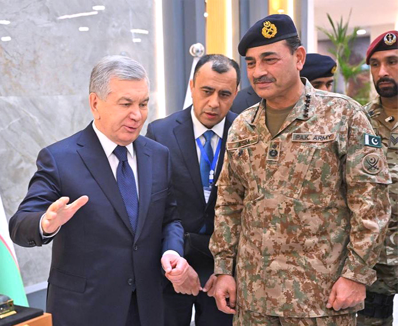 ISLAMABAD: February 05 – Field Marshal Syed Asim Munir, NI (M), HJ, COAS & CDF warmly receives the President of the Republic of Uzbekistan, Shavkat Mirziyoyev and the delegation along with senior ministers during their official visit to Global Industrial & Defence Solutions (GIDS) and conducted them during the visit to the facility. During the visit, the President was briefed on the diverse portfolio of GIDS encompassing advanced defence solutions, industrial capabilities, and technological innovations. The delegation toured key facilities and witnessed various defence products reflecting Pakistan’s growing expertise in indigenous defence production and industrial development. APP/ABB