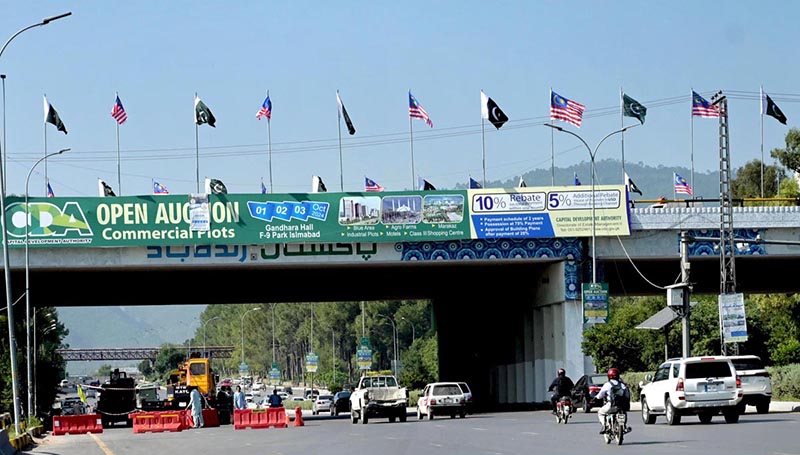 Flags of Pakistan and Malaysia adorn Zero Point Interchange, welcoming Malaysia’s Prime Minister Datuk Seri Anwar Ibrahim for his first official visit to Pakistan in the first week of October.