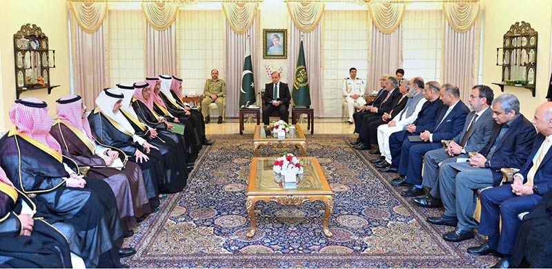 Foreign Minister of the Kingdom of Saudi Arabia H.E. Prince Faisal bin Farhan al-Saud leading a high level delegation called on Prime Minister Muhammad Shehbaz Sharif.