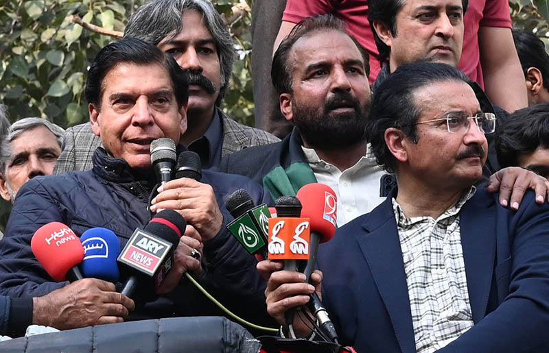 Former Prime Minister and Member of National Assembly Raja Pervez Ashraf addressing the Kashmir Rally of the People’s Party at Charing Cross Mall Road