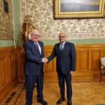 Former Prime Minister and PML-N leader Nawaz Sharif gives his thumb impression on a ballot paper to cast his vote at polling station during General Election-2024