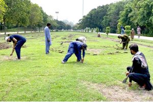 Gardeners of the Parks and Horticulture Authority (PHA) are busy their work to enhance the beautification of Jillani Park