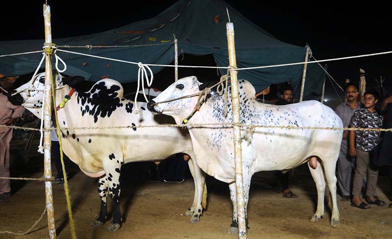 A view of sacrificial animals during night time at Bhatta chowk Cattle market