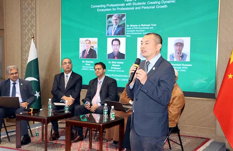 BEIJING: April 13 – A group photo of participants and panelists with Ambassador of Pakistan to China H.E. Mr. Khalil Hashmi at the 2nd Pakistan Professionals and Students Forum 2025 under the theme “Mentorship learning from the Learned “ organised by the Embassy of Pakistan. APP/FHA