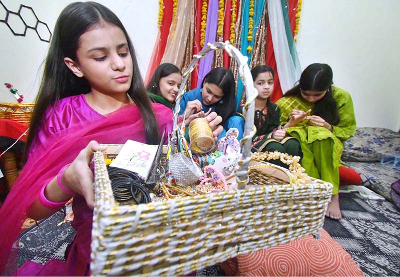 Girls busy in making mehndi designs on their hands during the preparation for the upcoming Eid ul Fitr