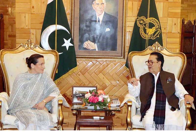 GILGIT: May 22 – Governor Gilgit-Baltistan, Syed Mehdi Shah presenting memento to Princess Zahra Aga Khan at Governor House.