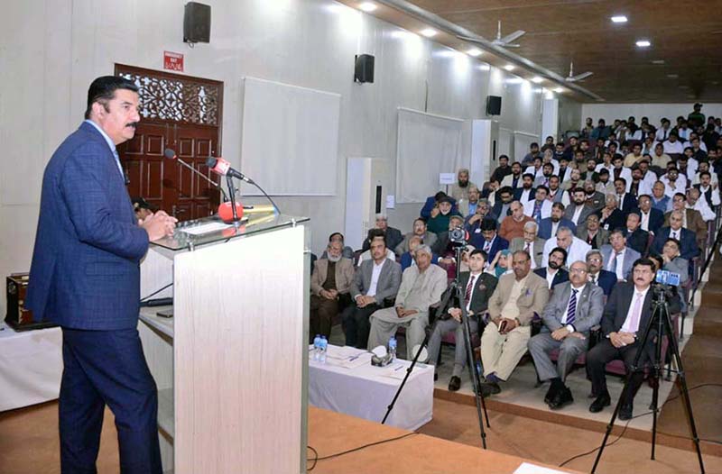Governor Khyber Pakhtunkhwa, Faisal Karim Kundi addressing during ceremony at Pak Red Crescent Medical and Dental College