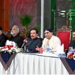 KARACHI: May 06 – Governor Sindh Kamran Khan Tessori welcoming Governor Khyber Pakhtunkhwa Faisal Karim Kundi on arrival at Governor House.