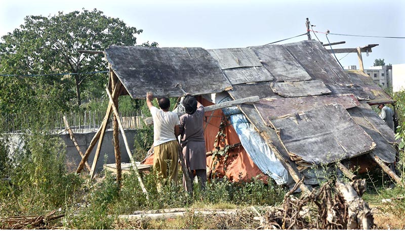 Gypsy men making makeshift home at roadside in the Federal Capital