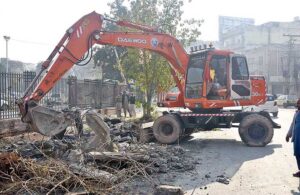 Heavy machinery being used for repairing sewerage line at Commercial Market.