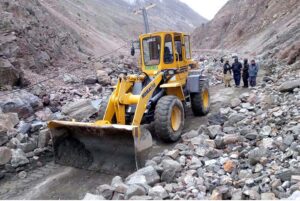 GILGIT: March 04 – Heavy machinery being used to clear the road of Astore Valley by the staffer of Gilgit-Baltistan Disaster Management Authority and Works Department after heavy snowfall caused land sliding in different area.