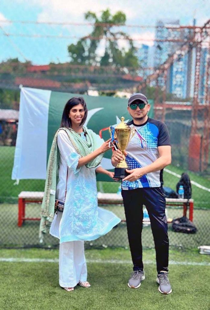 SINGAPORE: February 10 - High Commissioner Ms. Rabia Shafiq giving the trophy to the winning captain at the cricket tournament organized by the Pakistan High Commission. APP/TZD