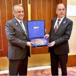 High Commissioner of Pakistan to UK, Dr. Mohammad Faisal presenting a memento to Ahmad Nawaz, former President of Oxford Union and survivor of APS Peshawar attack, at the Defence & Martyrs’ Day event. APP36-260924LONDON: September 26 – Previous Post Transport Minister of Tajikistan, Azim Ibrahim & Federal Minister for Communications, Abdul Aleem Khan during a meeting. Next Post Rana Sanaullah vows to revive Pakistan’s hockey glory