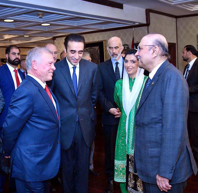 His Majesty King Abdullah II ibn Al-Hussein of the Hashemite Kingdom of Jordan with President Asif Ali Zardari, First Lady Bibi Aseefa Bhutto Zardari, and Chairman PPP Bilawal Bhutto Zardari at Aiwan-e-Sadr.