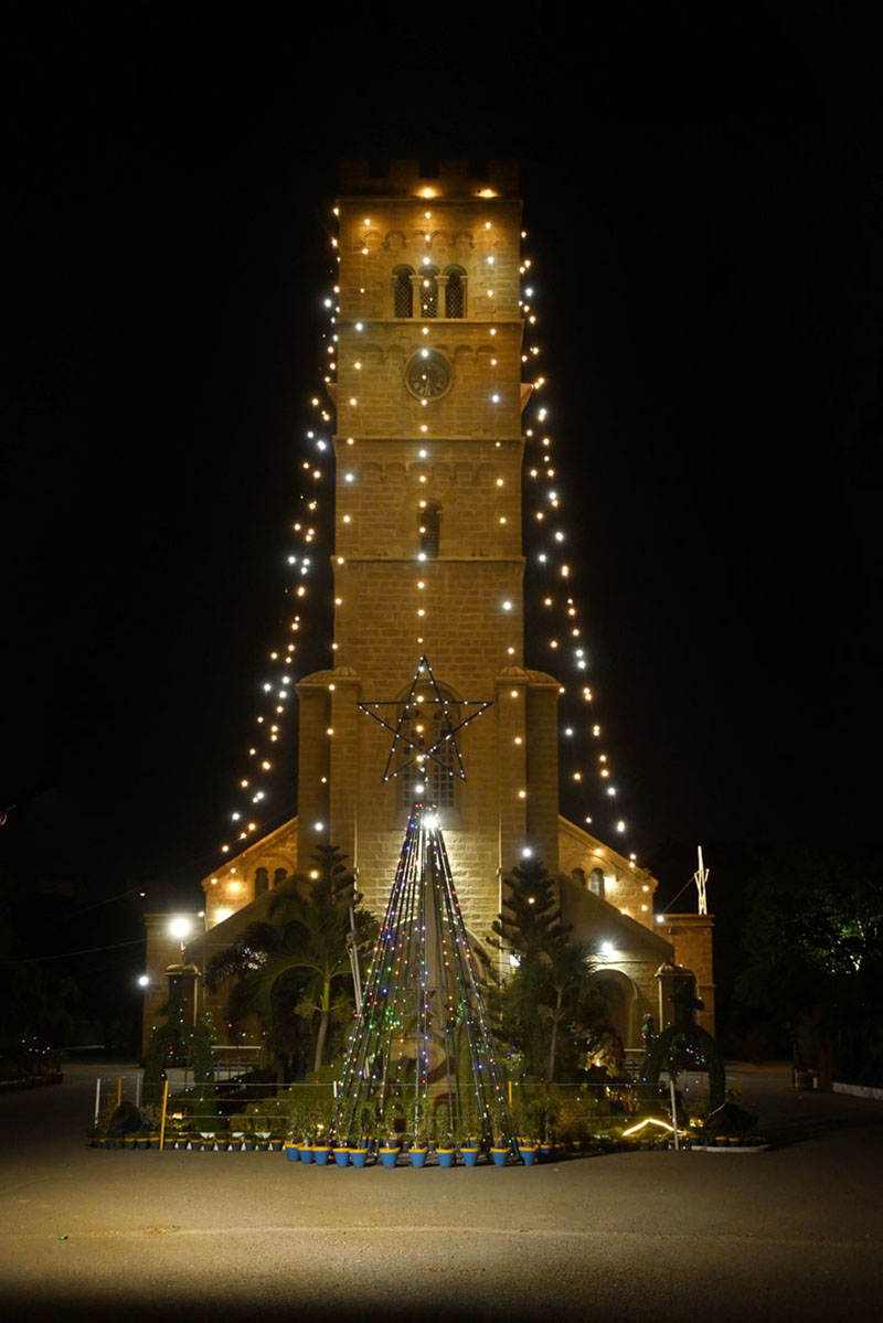 KARACHI: December 21 - Holy Trinity Church is illuminated ahead of Christmas celebrations. APP/SDQ/FHA