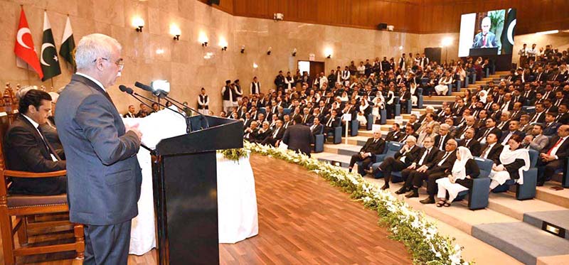 ISLAMABAD: April 06 – Hon’ble Chief Justice of Pakistan, Mr. Justice Yahya Afridi addressing the participants of MoU signing Ceremony at the Supreme Court of Pakistan. APP/TZD/FHA