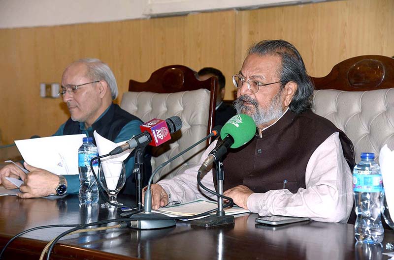 Imdad Ali Sindhi of Federal Education and Professional Training addressing at Punjab University office.