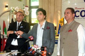 Interim State Minister of Tourism/Chairman PTDC, Poet,Syed Wasi Shah addressing a press conference at College of Tourism and Hotel Management (COTHM)