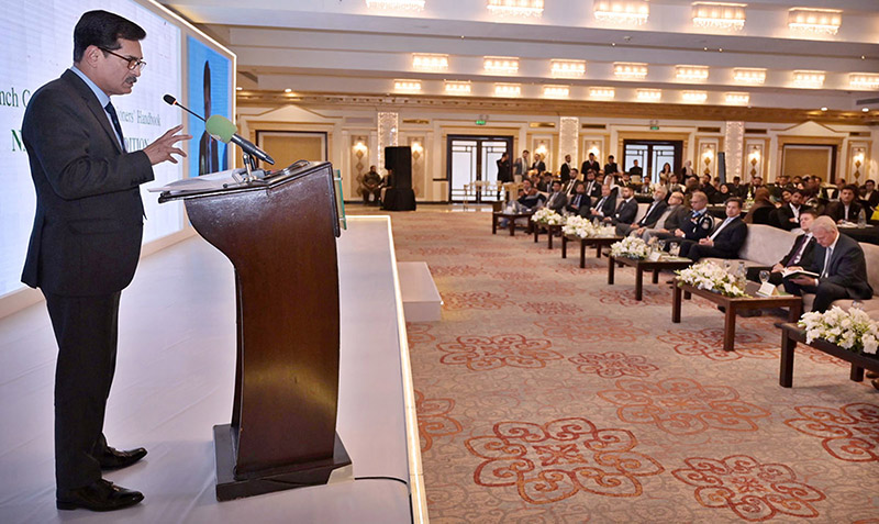 Secretary Interior Aftab Akbar Durrani addressing during the launching ceremony of the Practitioners Handbook Navigating Extradition in Pakistan organized by Ministry of Interior at local hotel