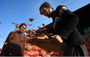 Laborer busy sorting good quality of onions at Vegetable market in the Federal Capital