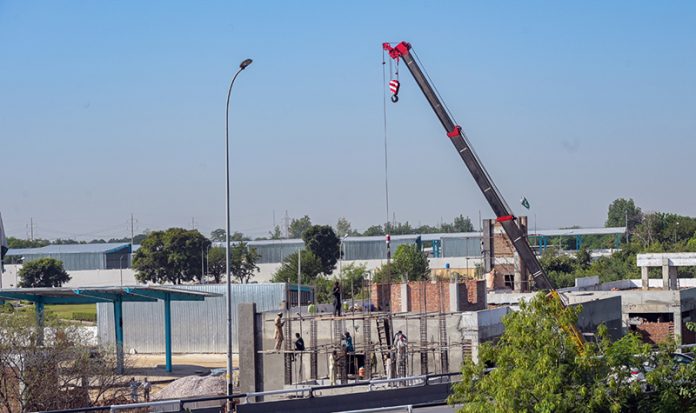 Laborers busy at work as the Capital Development Authority (CDA) constructs a bus charging station in H-8, part of a broader initiative to expand the electric bus network in the Federal Capital.
