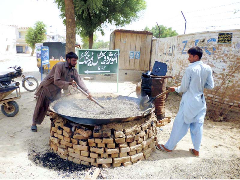 Laborers busy preparing carpeting material for the road. APP33-310724BAHAWALPUR: July 31 – Previous Post WAPDA awards Rs. 21.534b contract for installation of telemetry system at Indus Basin Next Post LESCO detects 507 power pilferers in 24 hours