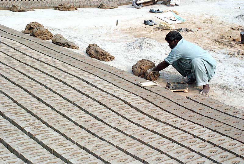 Labourers are busy in preparing bricks at local bricks kiln