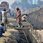 LARKANA: January 19 – Labourers are busy repairing work of the walls in front of Stupa at world famous archeological site of Mohen jo-Daro (Mound of Dead). APP/NAS/MAF/TZD