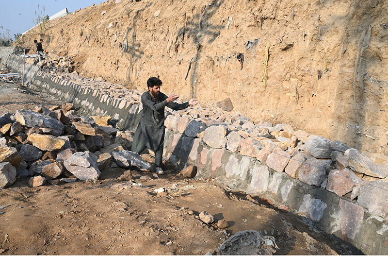 Labourers are busy with construction work near 10th Avenue as part of development activities in the Federal Capital