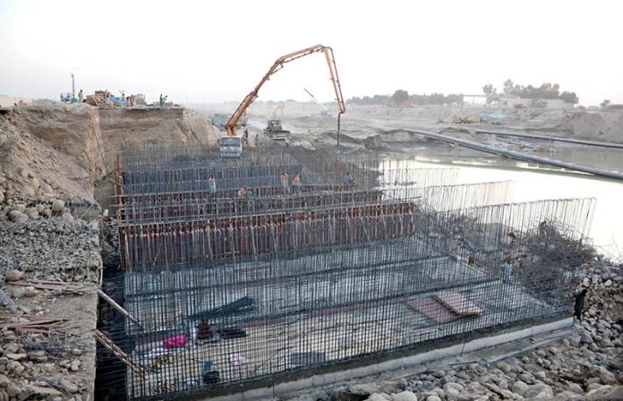 MULTAN: November 18 - Labourers busy in reconstruction work of the M5 Motorway after being damaged by flooding while heavy machinery and workers reinforce the structure at the site at Jalalpur Pirwala. APP/SFD/MAF/TZD