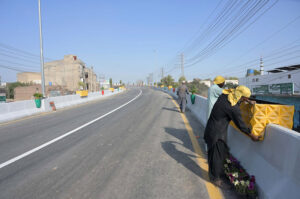 HomePhotosGeneral Coverage PhotosLabourers installing plant pot on new built flay over at Qanchy Moor