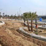 Laboures busy in construction work of Serena Chowk Interchange Project during development work in the Federal Capital.