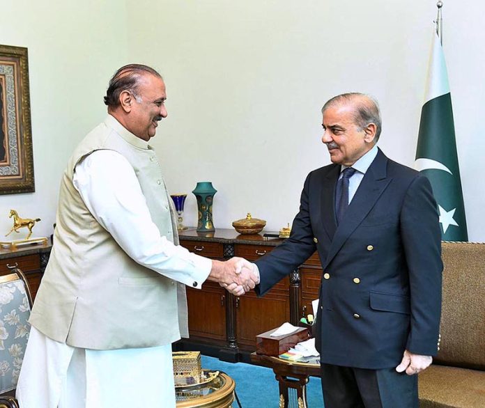 Leader of the Opposition Raja Riaz Ahmad calls on Prime Minister Muhammad Shehbaz Sharif as part of the consultation process for selection of the Caretaker Prime Minister