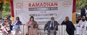 Managing Director Pakistan Bait-ul-Mal Senator Capt. Shaheen Khalid Butt and Chairperson Benazir Income Support Programme, Senator Rubina Khalid in a Ramadan Packages Distribution Ceremony organized by Kashmir Orphan Relief Trust (KORT)