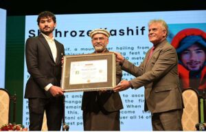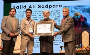 Managing Director PTDC Aftab Ur Rehman Rana presenting certificate to the Mountaineer during the conference on “Sustainable Mountain Tourism in Pakistan” organized by Pakistan Tourism Development Corporation (PTDC) on the occasion of International Mountain Day 2023 at Pakistan Nation Council of Arts (PNCA)