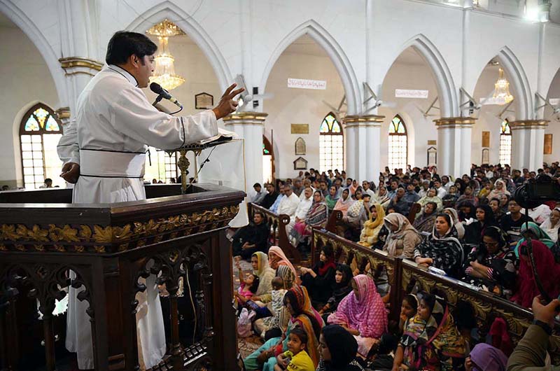 APP14-180425 PESHAWAR: April 18 – Members of the Christian community gather to attend Good Friday Mass at St. John’s Cathedral Church. APP/SYR/MAF/FHA/SSH