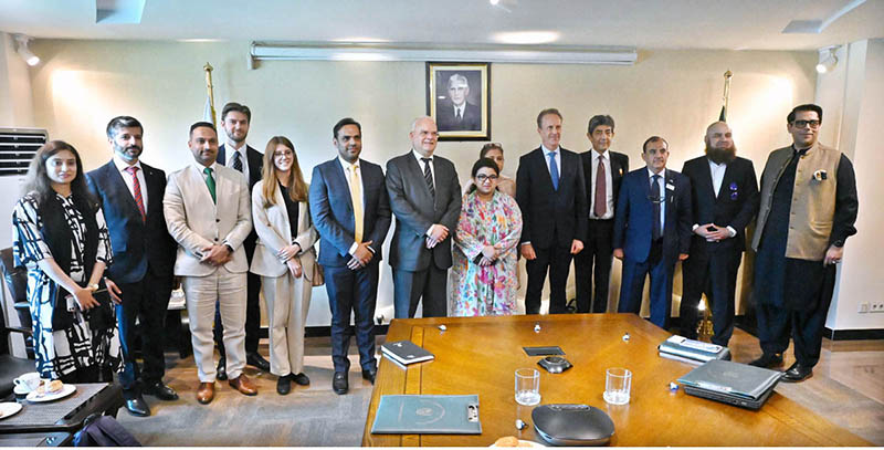 ISLAMABAD: June 27 - Minister of State for IT and Telecom Ms. Shaza Fatima Khawaja in a group photograph after Roundtable on IT and Digitalisation with Swedish companies.