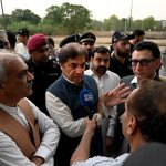 Motorcyclist covering his face with cloth to avoid the heat at College road. APP19-180525SARGODHA: May 18 – Previous Post Youngster enjoying bathing in the running tube-well to get relief from scorching hot weather in the city. Next Post Federal Minister for Railways, Muhammad Hanif Abbasi talking to media after visits the railway station to review ongoing operations and facilities.