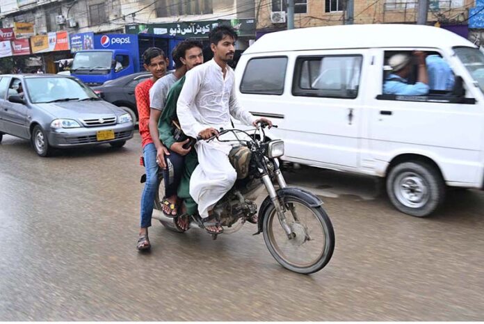 Motorcyclist on the way during Light Monsoon Rain in some areas of the City.