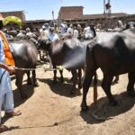 Motorcyclists cover their faces with piece of cloth to protect from scorching heat at University Road. APP07-290524SARGODHA: May 29 – Previous Post An artisan busy in preparing traditional clay oven (tandoor) at his workplace. Next Post Livestock staffers disinfecting animals in the animal market at Ring Road for precautionary measures to prevent Congo virus.