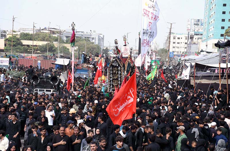 Mourners attending the Chehlum procession at M.A. Jinnah Road to commemorate the martyrdom of Hazrat Imam Hussain (RA) the grandson of Holy Prophet Muhammad (PBUH).
