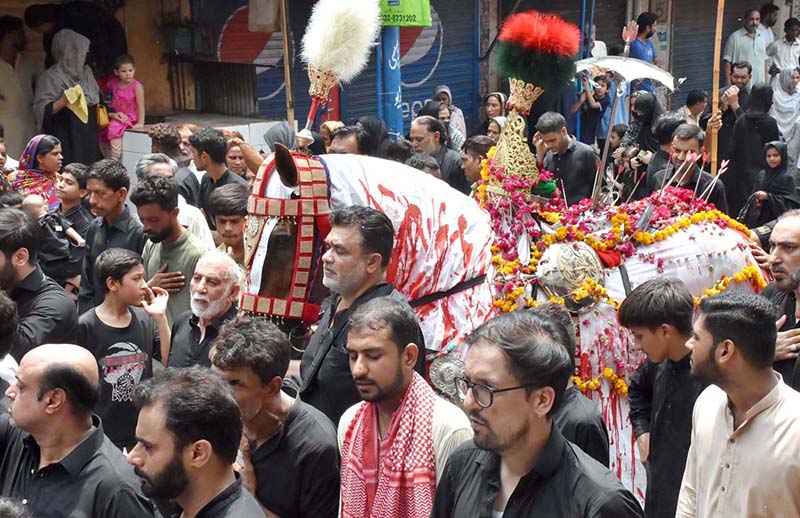 SIALKOT: July 17 – Mourners attending the procession on 10th of Holy Month of Muharramul Harram. Muharram is the mourning month in remembrance of the Shahadat of Hazrat Imam Hussain (RA), the Grandson of the Holy Prophet Mohammad (PBUH).