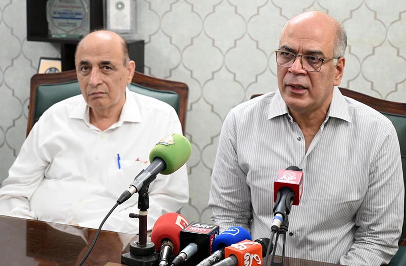 Mr. Riaz Ahmed Memon (Advisor) Federal Ombudsman and Navid Ahmed Shaikh, Member (Incharge) Secretariat talking to media persons during a visit and inspecting facilities of the Protectorate of Emigrants Office.
