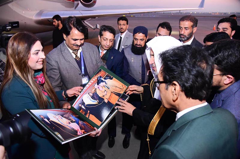 Ms Nargis Shaziya Chaudhary, Director HP, Press Information Department presenting a photo album to Secretary General of Muslim World League H.E. Dr. Mohammad bin Abdulkarim Al-Issa on the completion of his Pakistan visit at the Islamabad Airport