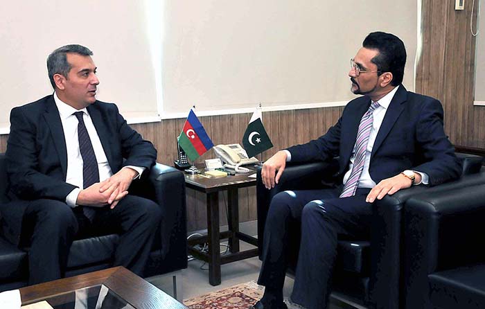 Muhammad Tahir Javed, SAPM/MOS on Investment meeting with H.E. Khazar Farhadov, Ambassador of Azerbaijan at SAPM/MOS office.