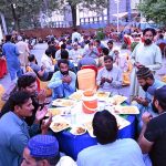 Muslims carrying their luggage arrive at masjid to observe Itikaf, a spiritual practice performed during the last ten days of the holy month of Ramazan, in which believers seclude themselves in the mosque for continuous prayers and devotion, seeking the blessings of Almighty Allah in accordance with the Sunnah of Prophet Muhammad (PBUH).