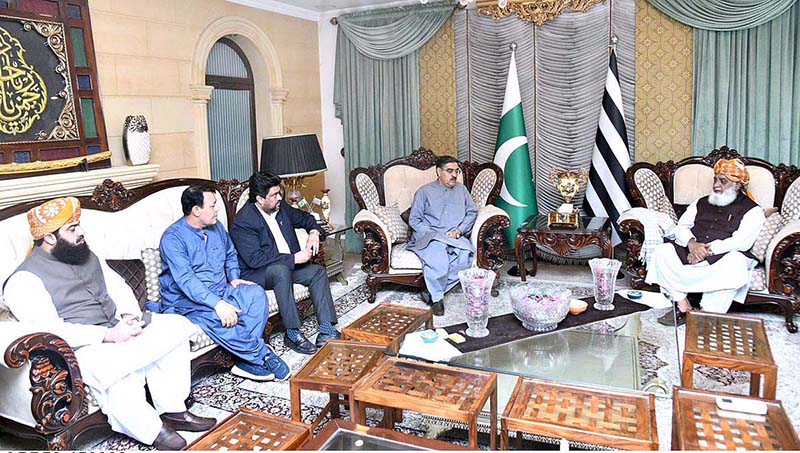ISLAMABAD: August 15 – Caretaker Prime Minister Anwaar-ul-Haq Kakar visits the residence of President JUI-F Maulana Fazal Ur Rehman his condolences for martyred in suicide attack in Khar, Bajuar at the JUI-F Workers' Convention. APP/ABB